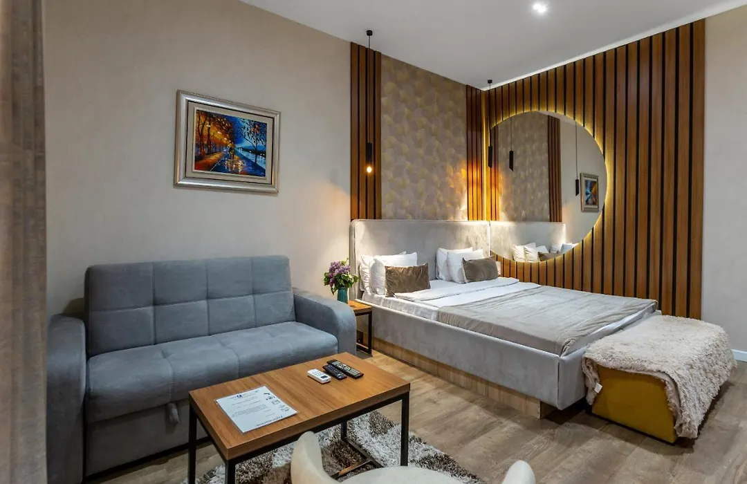 Das Hotel verfügt über 13 Zimmer mit einem Ankleidebereich. Hier werden auch ein Personalcomputer und ein Flachbildfernseher mit Satellitenkanälen sowie eine Minibar und Ausstattung zur Kaffee- & Teezubereitung angeboten. Einige der klimatisierten Zimmer sind auch mit einem Wasserkocher und Glasgeschirr ausgestattet. Die Badezimmer verfügen über einem Bidet, einer getrennten Toilette und einer Dusche sowie bieten tolle zusätzliche Annehmlichkeiten, darunter einen Haartrockner und eine Duschhaube.